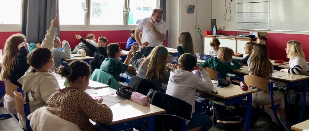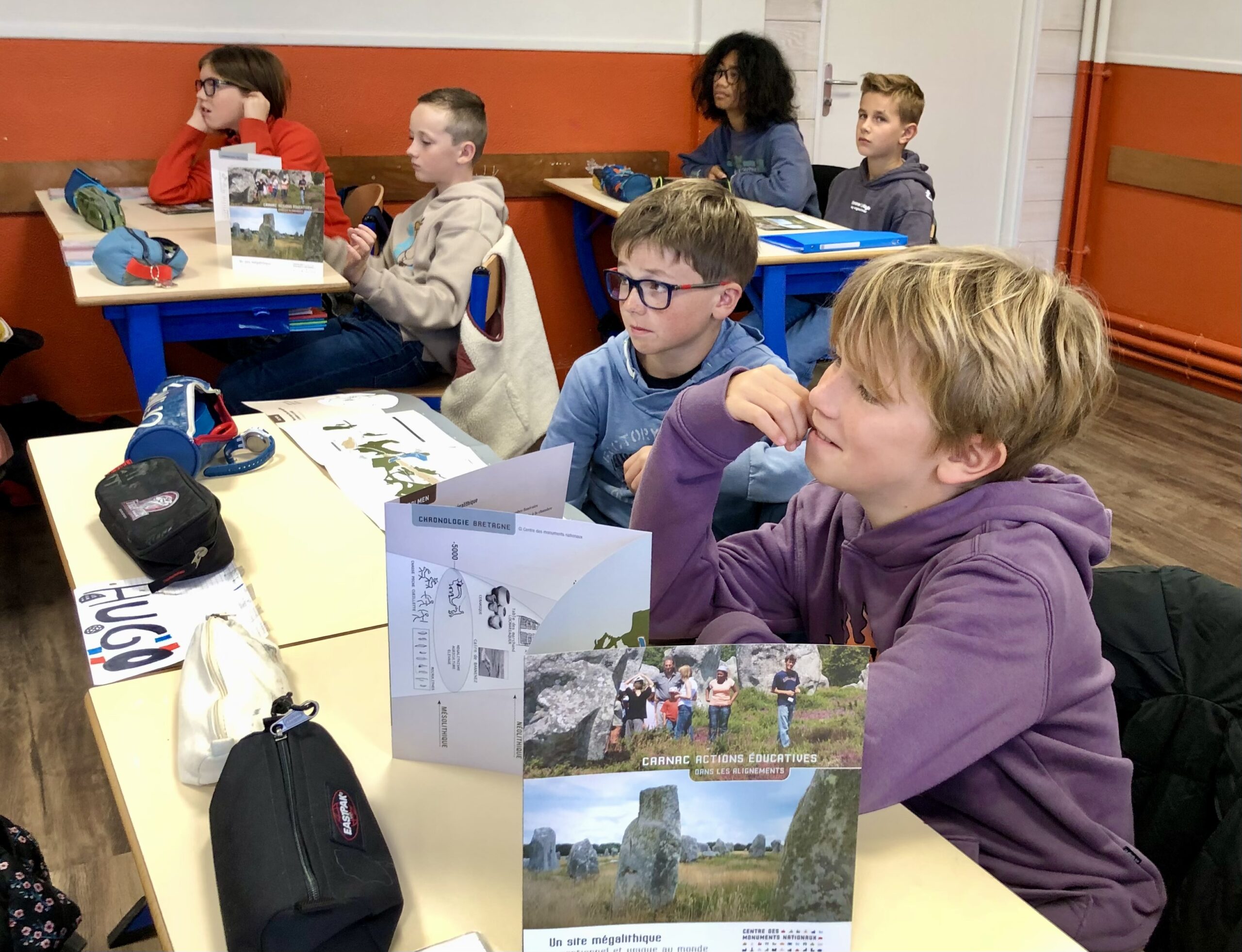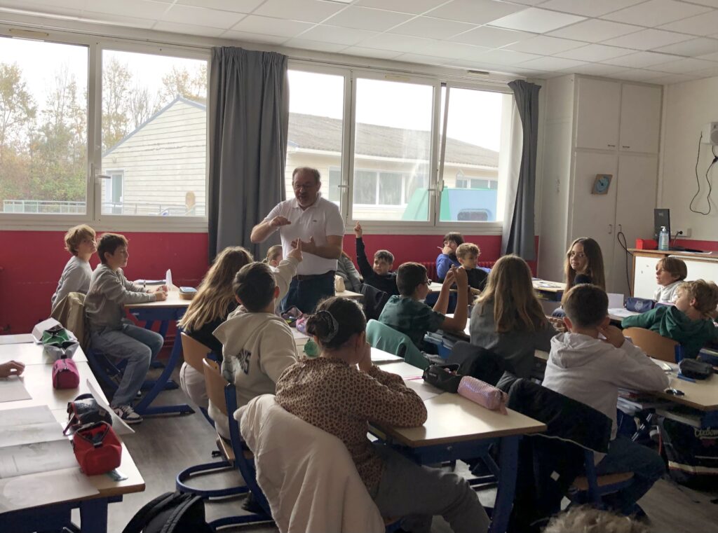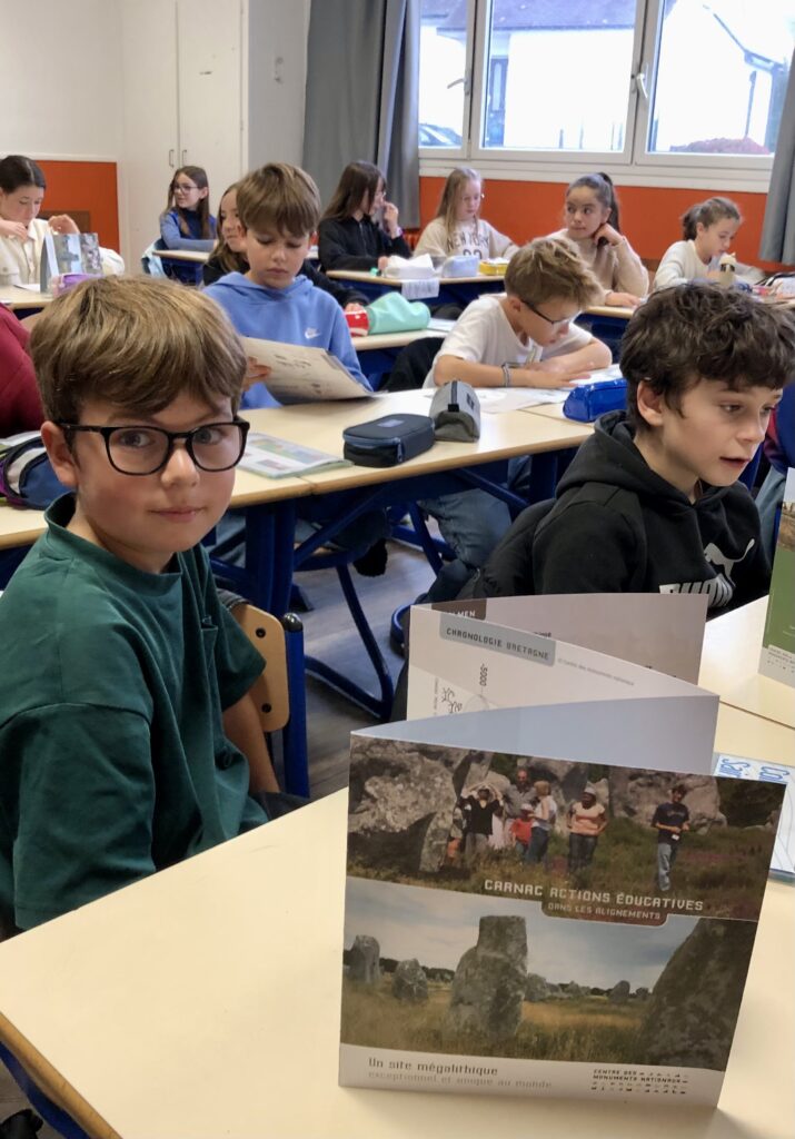 Jean-Michel BONVALET, responsable du service culturel et éducatif du centre des monuments nationaux à la maison des mégalithes de Carnac est intervenu 2 heures dans chaque classe.